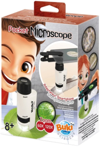 A pocket microscope for exploring the microscopic world with a 120x magnification microscope.Included a leaflet with a quiz on easily observable everyday objects.WARNING! Chocking hazard.Requires 1