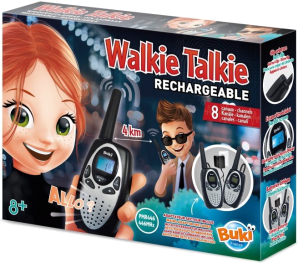 Explore the world using rechargeable walkie-talkies with a range of 4 km.Works with lithium batteries and a mains adaptor, both included.Many functions: 8 channels for use anywhere, call mode with 10 call tones, backlit screenÖ For children aged 8 and over only.WARNING ! Not suitable for children under 36 months due to small parts which can be ingested.Choking hazard.