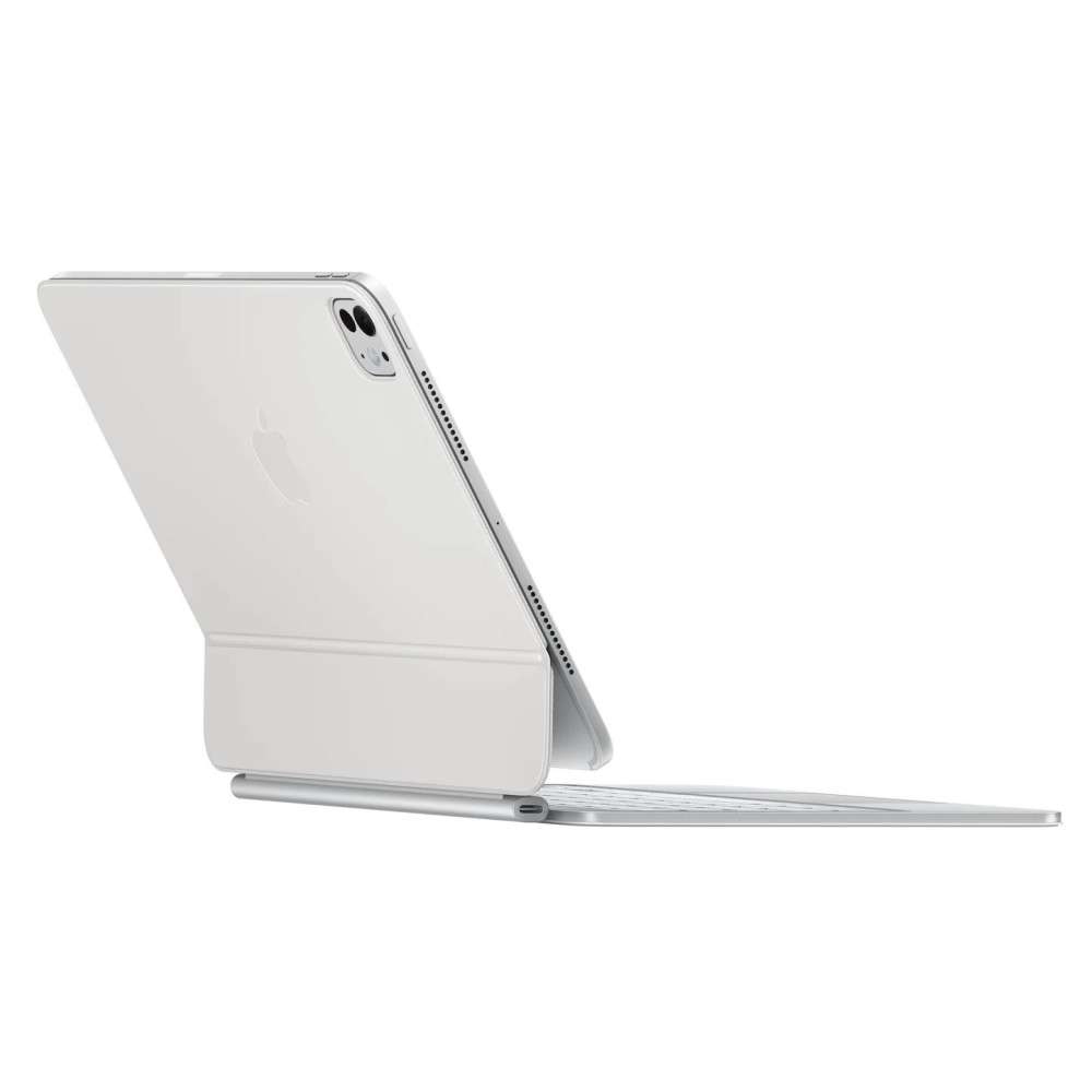 Magic Keyboard for iPad Pro delivers an amazing typing and trackpad experience in a sleek, portable new design with an aluminum palm rest.The keyboard includes a 14-key function row for quick access to screen brightness, volume controls, and other features, and a USB‑C connector for pass-through charging.The floating cantilever design smoothly adjusts to multiple viewing angles.