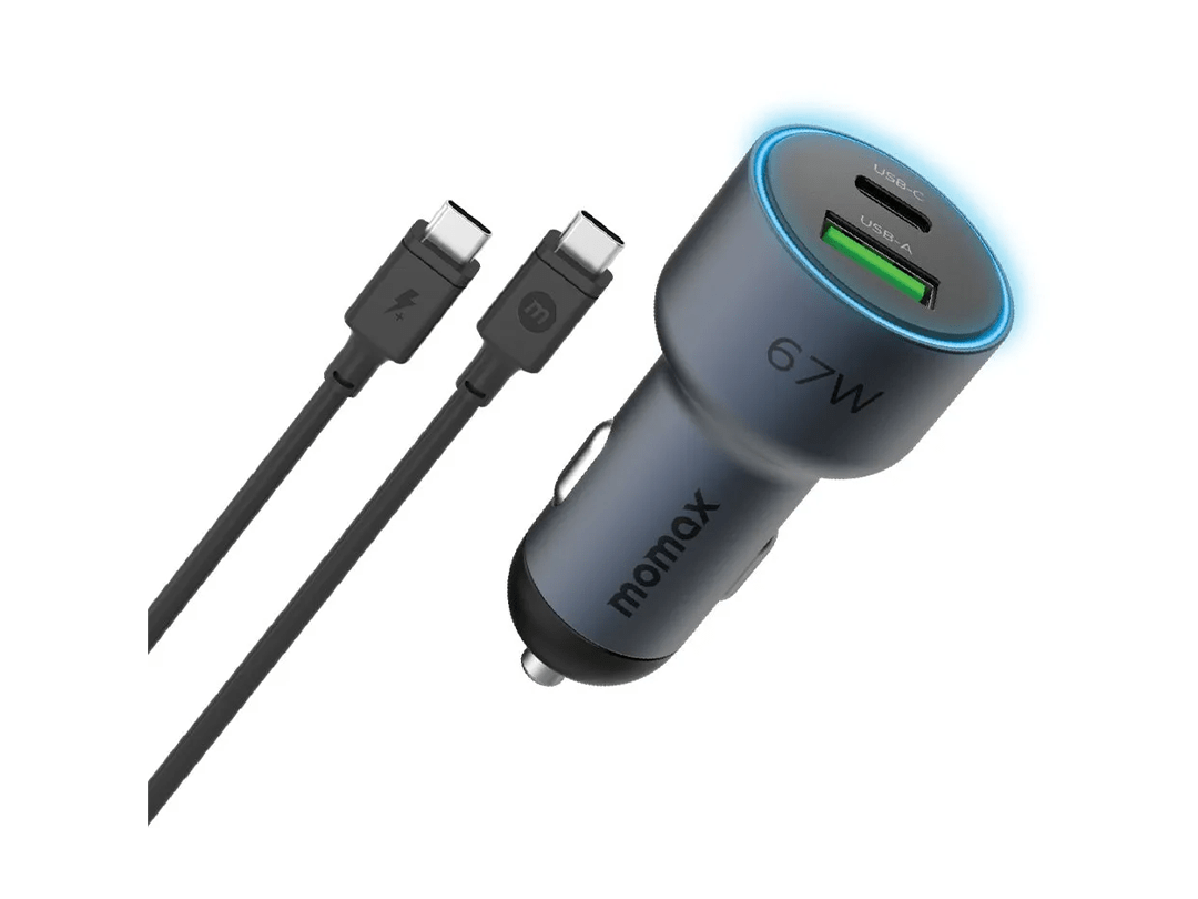 Buy Momax Move 67W Dual Port Car Charger 1Meter 100W Type C to Type C Cable in Qatar