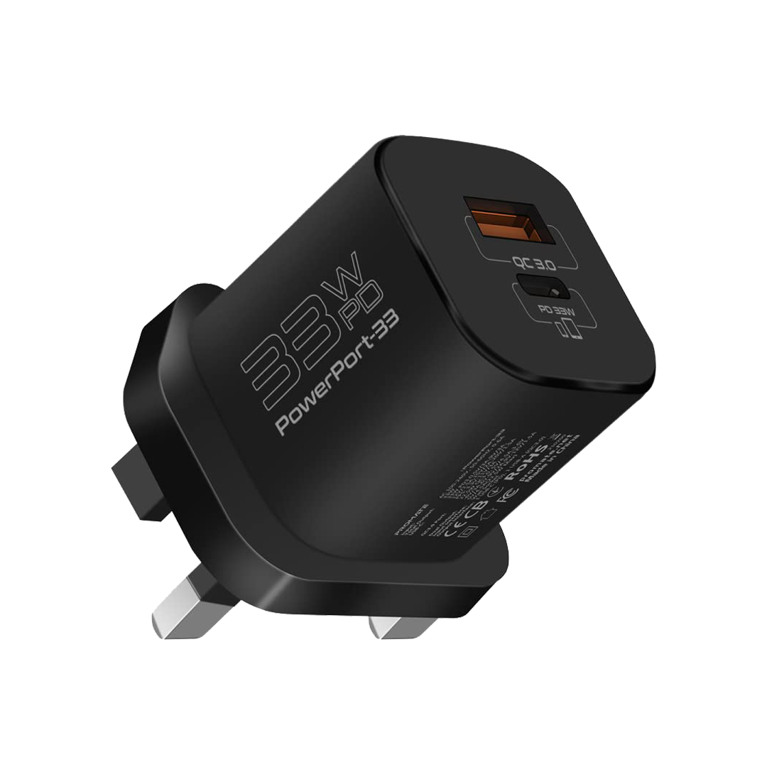 Buy Promate PowerPort-33 33W Power Delivery GaNFast™ Charging Adapter - Black in Qatar99.00NovoProduto Limitado
