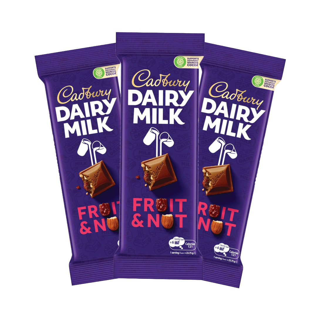Cadbury Dairy Milk Chocolate Fruit & Nut 95g x 3 @Sp10.75NovoProduto Limitado
