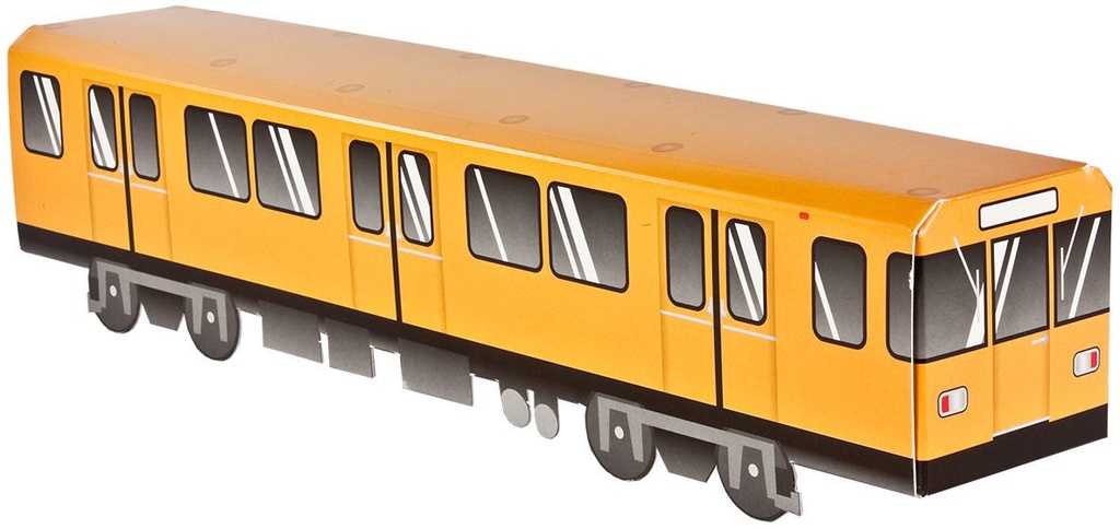 Stylish & fresh – the 3D wholecar for home!Robust high quality “Made in Germany”!Exclusively available here!Folded cardboard train:Berlinfor styling and collectingspecial-coatedhigh qualitypre-folded in A4 outer packagingperfect for ONE4ALL acrylic markersmeasurements: 43,5 x 8,2 x 10,4 cm
