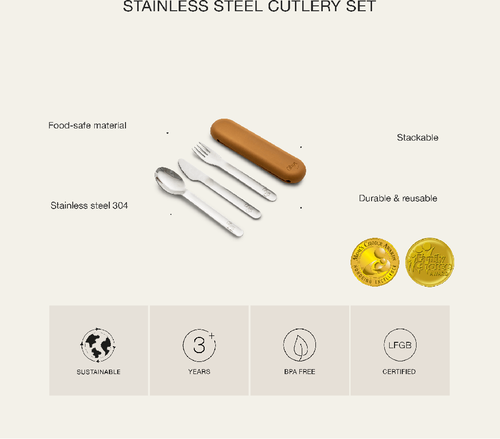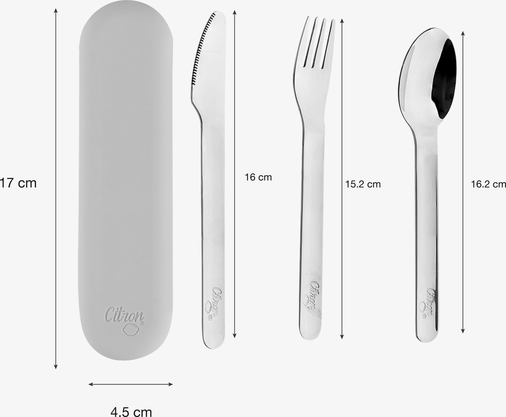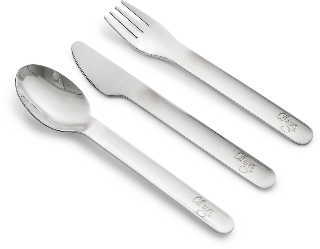 Today, we’re much more observant of how and what tools we use to eat for safety and hygienic reasons.Our set of cutlery makes sure your meal experience (and your family’s) is always a personal one with all the convenience of having your own set of flatware.The stackable 3-piece design is compact and easy to carry for any to-go meal that feels like eating at home.