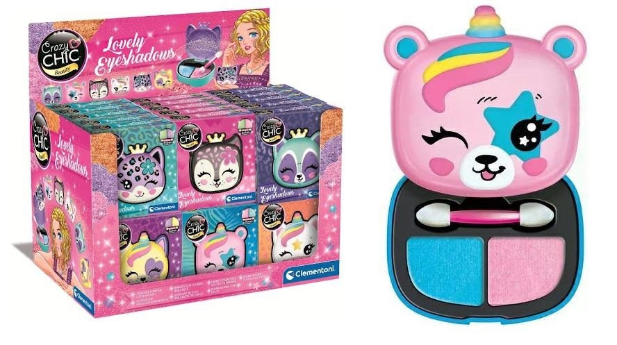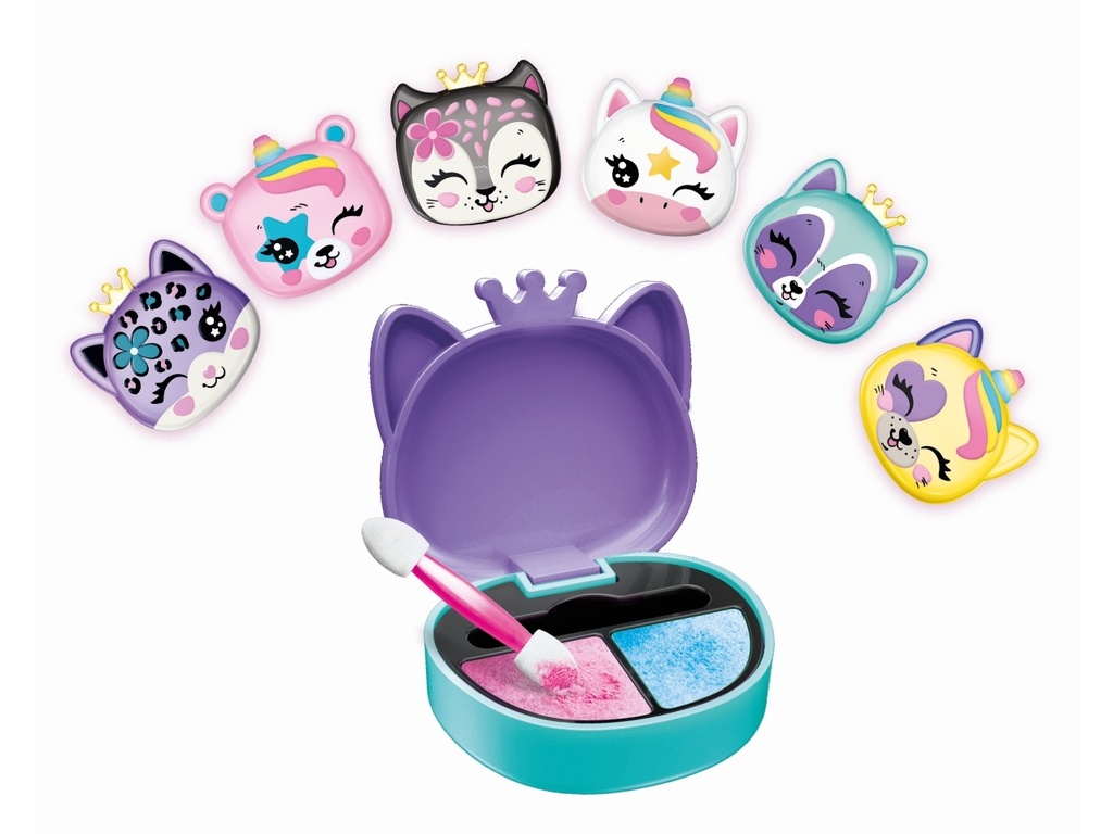 A mini make-up set in the shape of a sweet puppy, in a compact format to always be carried with you and with 2 eye shadows.• The set is made up of 2 eye shadows and an applicator.• Each sweet puppy has a golden crown or a multicolored horn just like the other puppies in the line, all to collect.The set is designed to win over little girls!