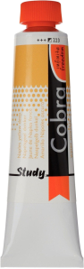 Cobra Study oil colour in Naples Yellow Deep 223 is a semi-opaque colour with excellent lightfastness ( and ).About Cobra StudyCobra Study is a water-mixable oil paint that offers the same fantastic results as traditional oil paints, without having to use harmful solvents.Cobra Study is made with the same high-quality pigments, and yet, with Cobra Study you can paint at an affordable price.This is because we offer only a selected number of colours and use less pigments that are not as finely milled as those used in the Cobra Artist series.Can be mixed and cleaned with water.Created with high-quality pigments.Affordable alternative for the Cobra Artist series.Available in 40 semi-transparent, semi-opaque and opaque colours with the highest degree of lightfastness ( and ).Cobra can be used in conjunction with traditional oils and when mixed at a ratio of Cobra 4:1, the mixture will retain its ability to be thinned and cleaned with water.