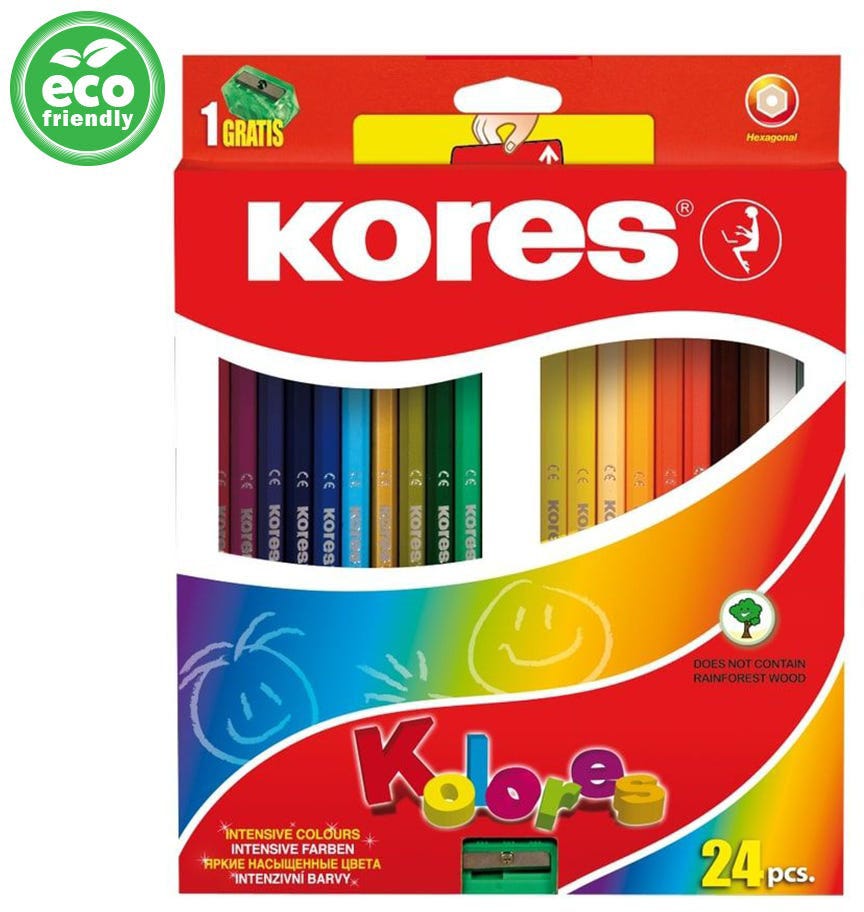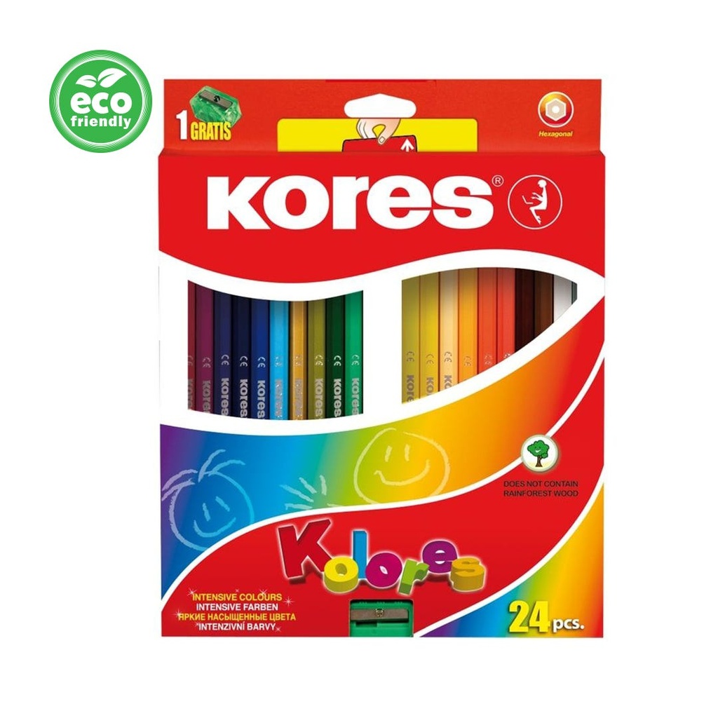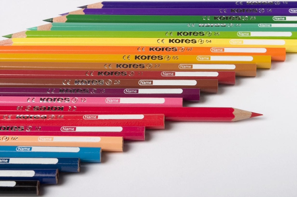 Kolores 24 Coloured PencilsHigh quality wood for easy sharpeningName field included on each pencilExtra colour pigments for super intense & vibrant colours
