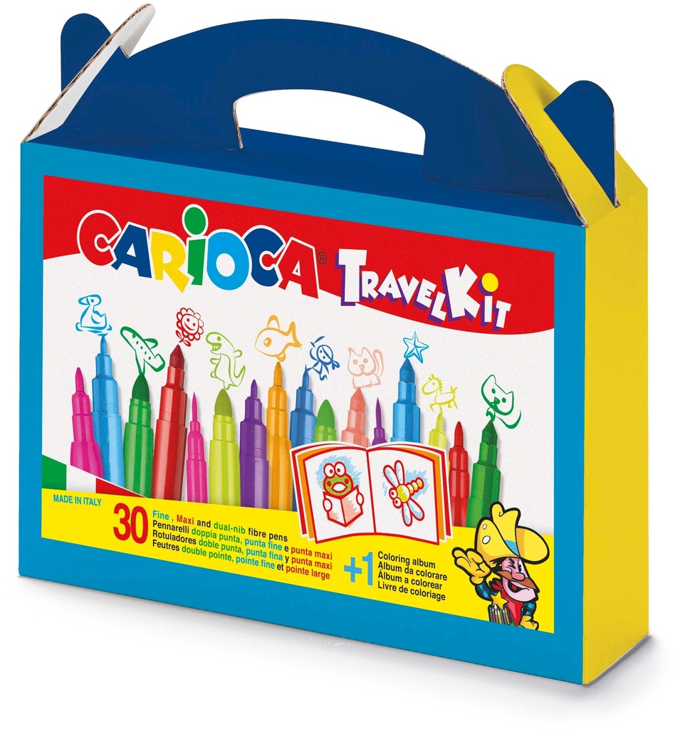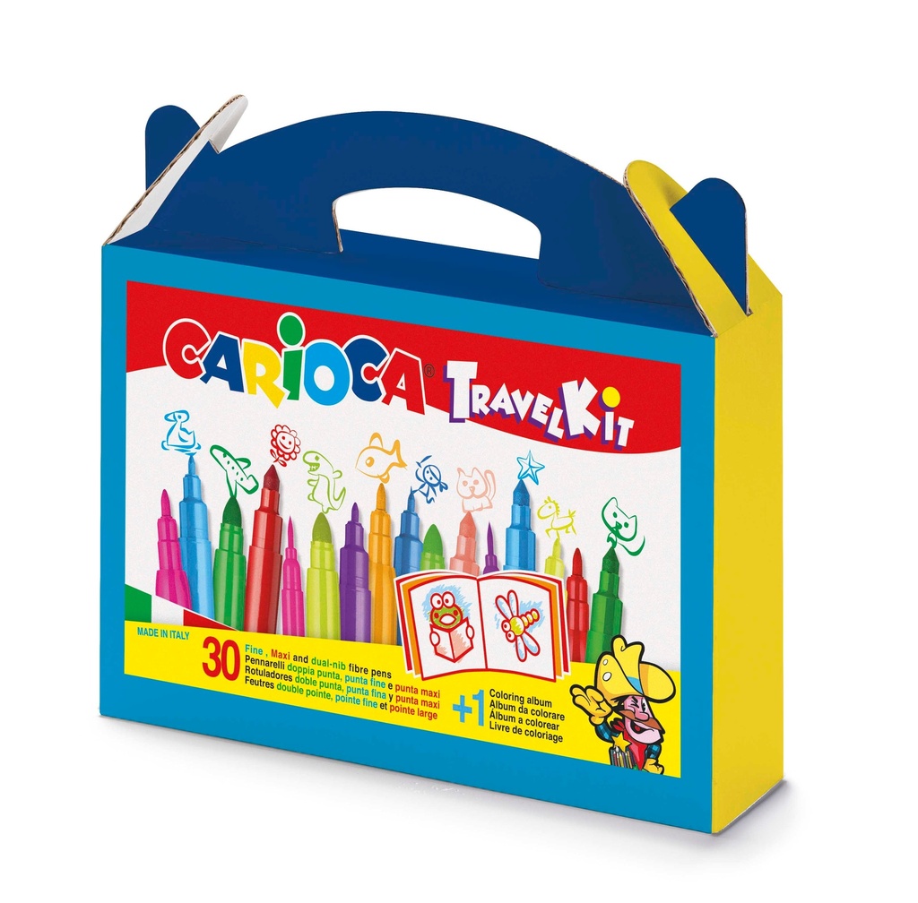 Coloring Set, Travel Suitcase, Set Of 30 Pcs Felt Tipcs + Coloring Album, Carioca