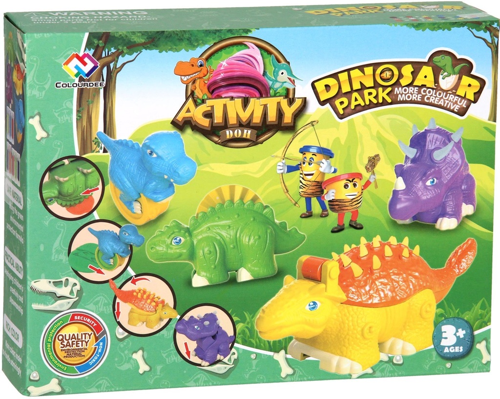 Have hours of fun with this dinosaur clay set! Each dinosaur has its own unique part to play with the clay, such as cutting it, leaving footprints, or letting clay come out of its back or head! Contents: four different dinosaurs and eight different colours of clay (227 grams in total).The dinosaurs are made of plastic.
