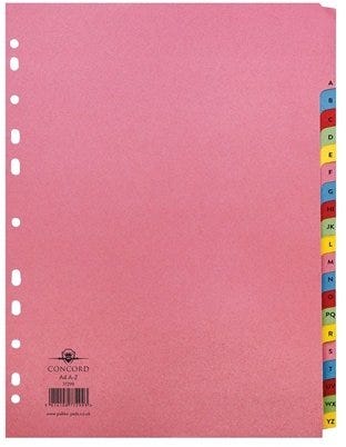 Good organisation is key to efficient and hassle free daily filing.Using these 20-Part A-Z Concord Reinforced Subject Dividers, arranging and indexing your presentations, projects, filing and notes h