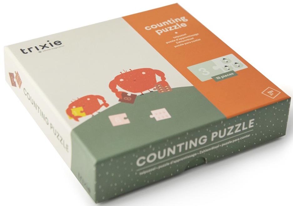 Learning how to count to ten is fun! These 10 different counting puzzles with friendly animal faces guarantee your child will have fun while learning to count..The colourful jigsaw pieces will help children recognize and remember all the numbers.Not only will they learn to count to ten, children will also enhance their motor skills while puzzling the right pieces together.This game is made from strong FSC© cardboard and soy ink.