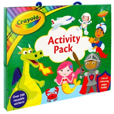 Enjoy hours of puzzling fun and more with this Crayola themed Activity Pack.Includes:• Sticker Book• 2 x colouring books• 90+ reusable stickers• Carry caseWith loads of beautiful pages to add vibrant colours to plus so much more.A great activity pack, perfect for youngsters when out and about or at home.