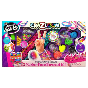 Make it, Wear it & Share it! Loop, Bead & Create Colorful Rubber Band Bracelets! Over 2000 Bands & 1000 Beads! Featuring Trending Neon, Tie Dye & Confetti & Candy Color Rubber Bands! Includes 4 Looms! Double the Mini Loom and 2X the Ultimate Cra-Z-Loom Rubber Band Fun! Personalize with ABC & Fun Fashion Beads!