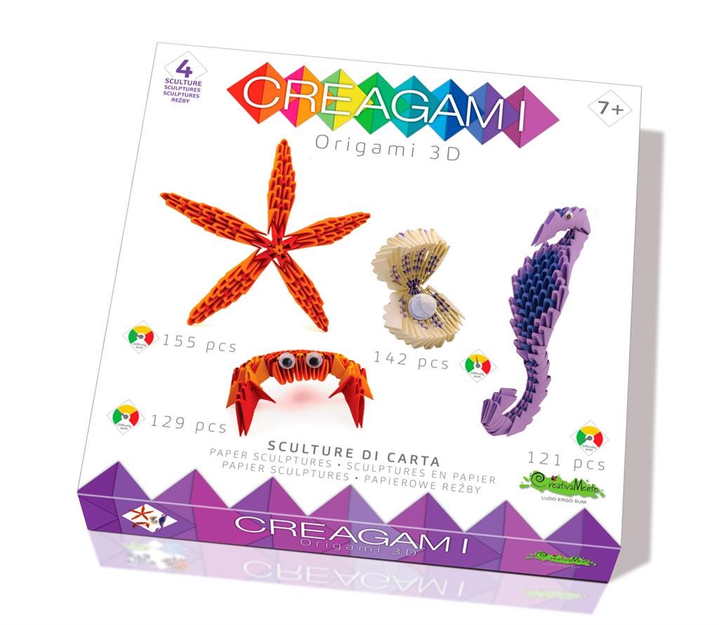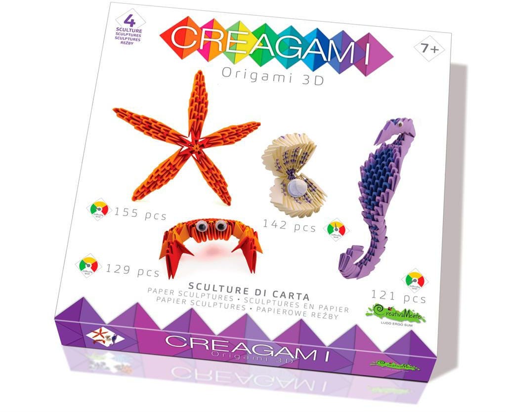 Creagami is a kit for creating modular origami.Create the basic module by folding the pre-cut cards and with the guidelines, and make your 3d sculpture