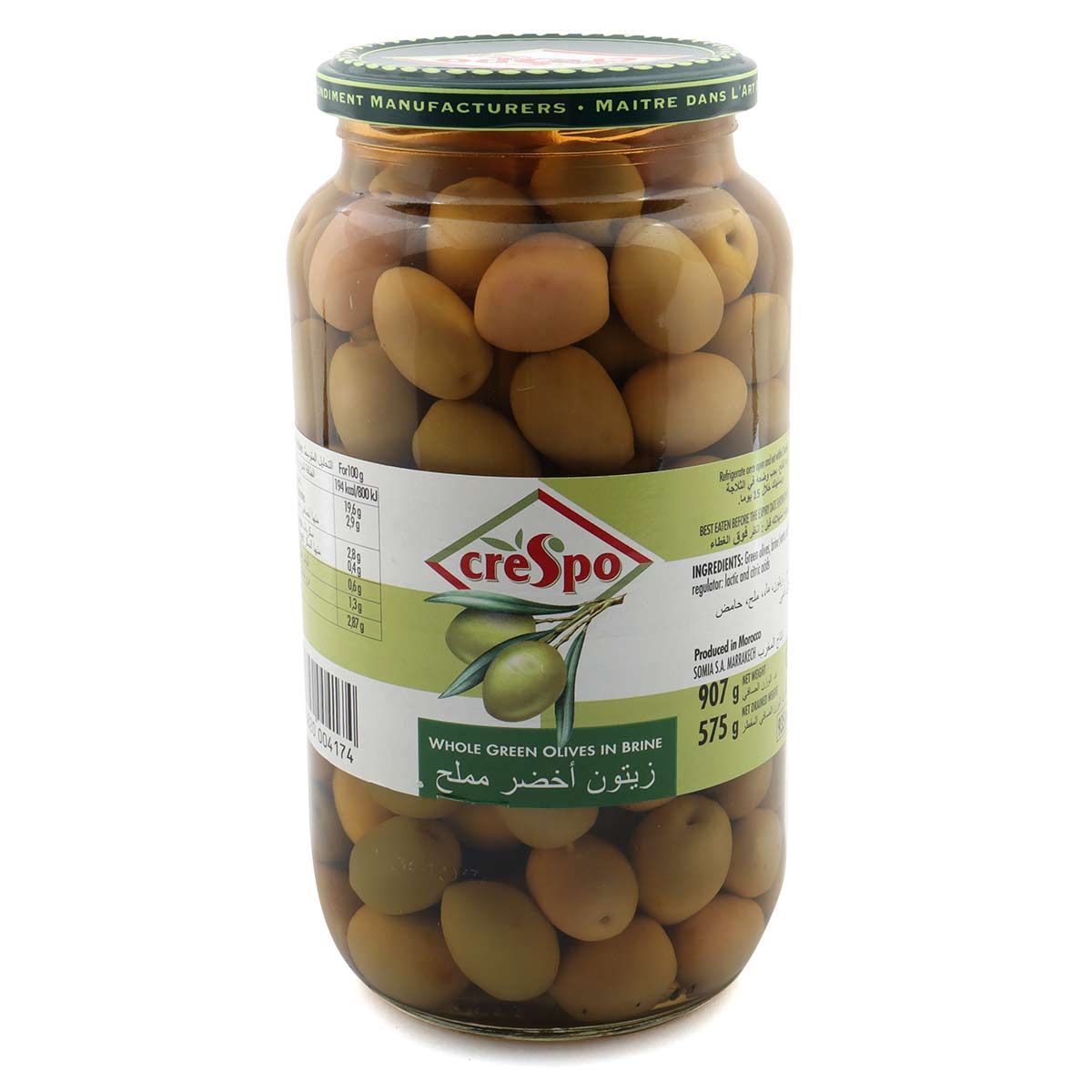 Crespo Whole Green Olives In Brine 907g