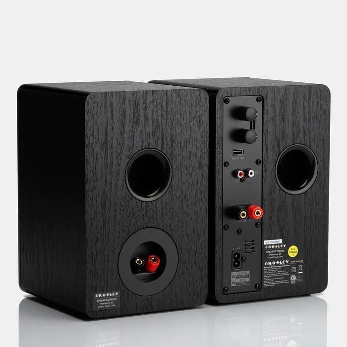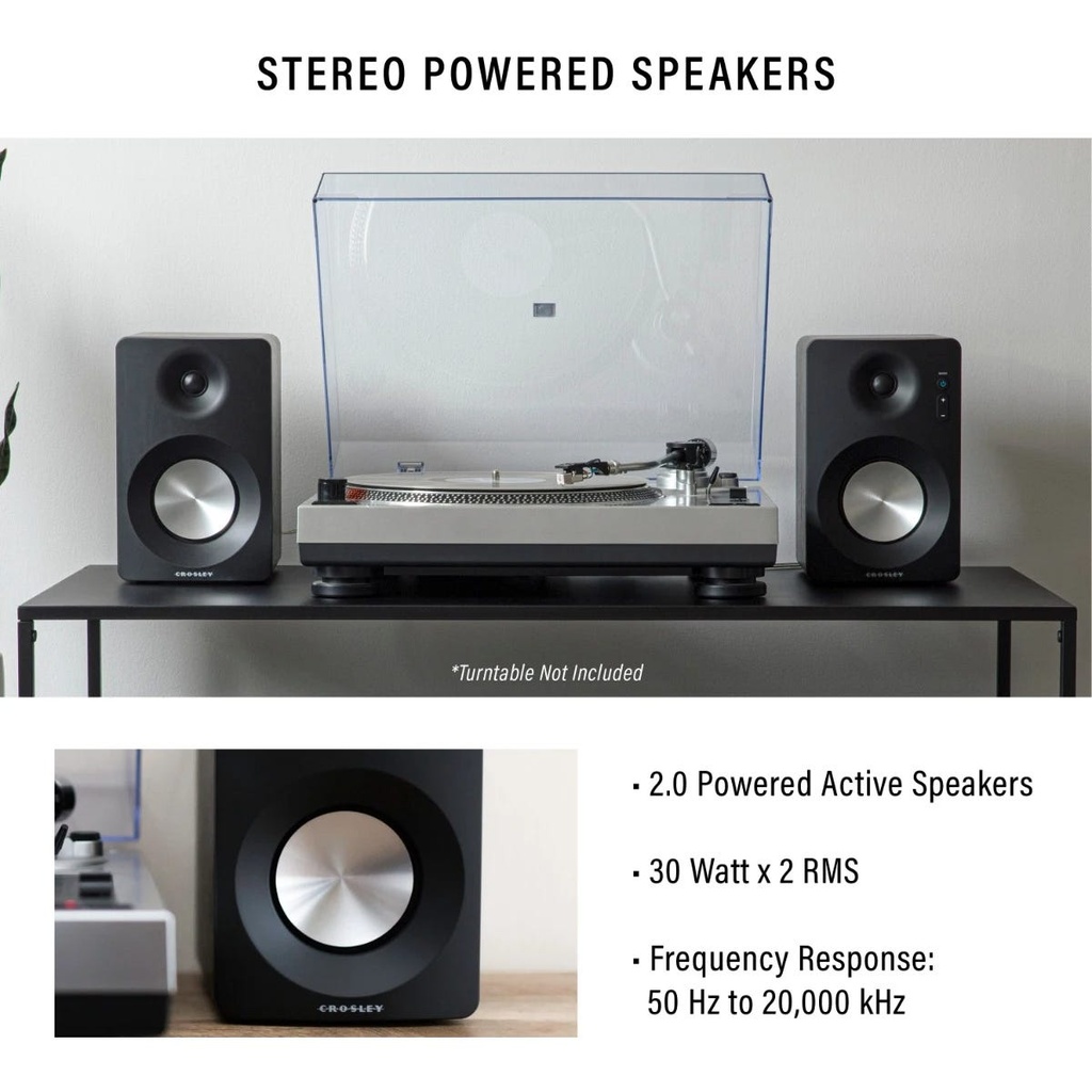 CROSLEY S100 STEREO POWERED SPEAKERSThe Crosley S100 Stereo Powered Speakers were specifically designed with the turntable in mind! They feature a built-in 30 watt power amp and Bluetooth connectivi