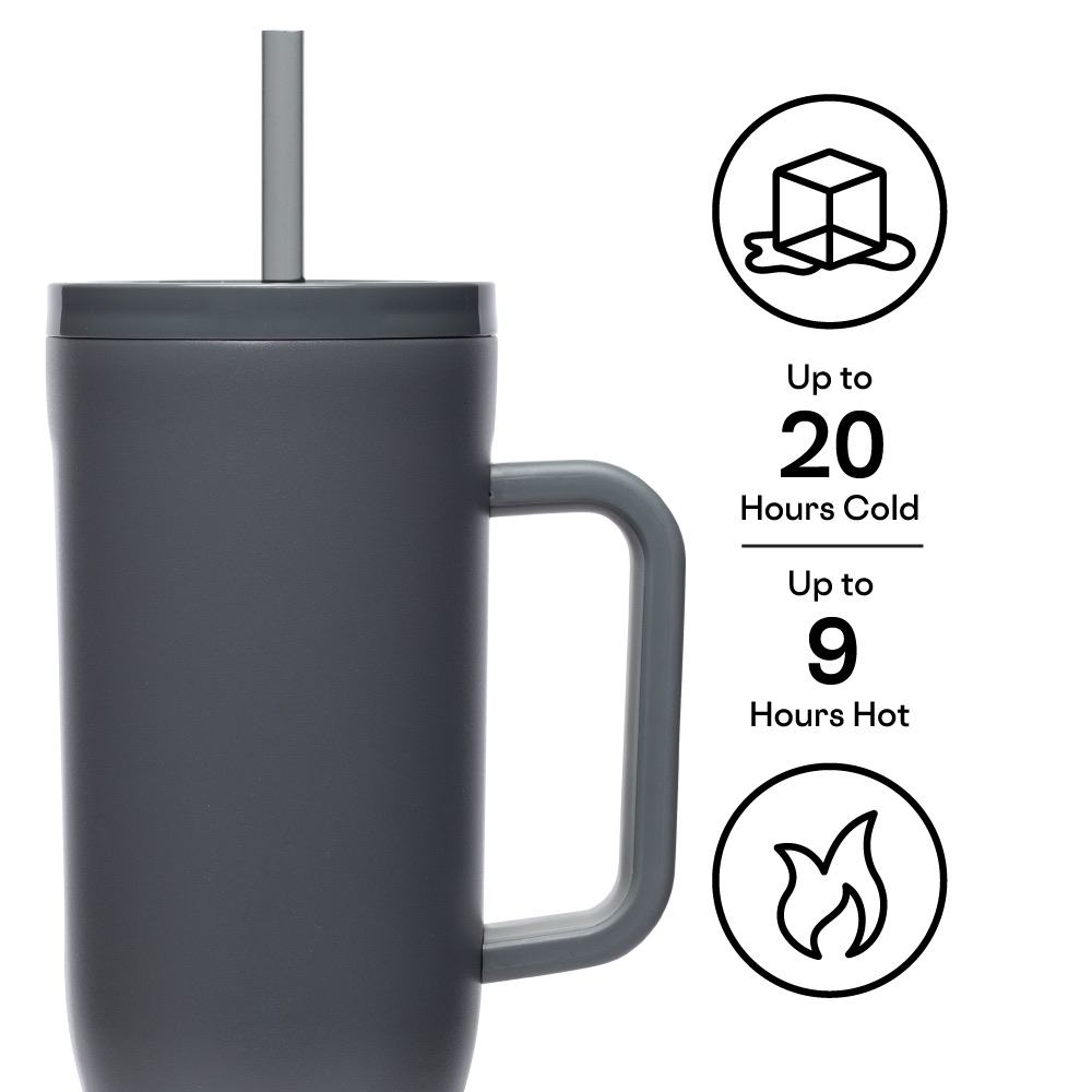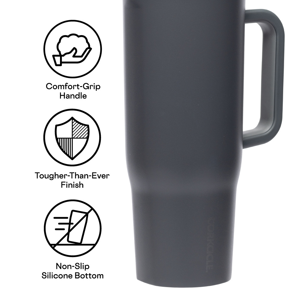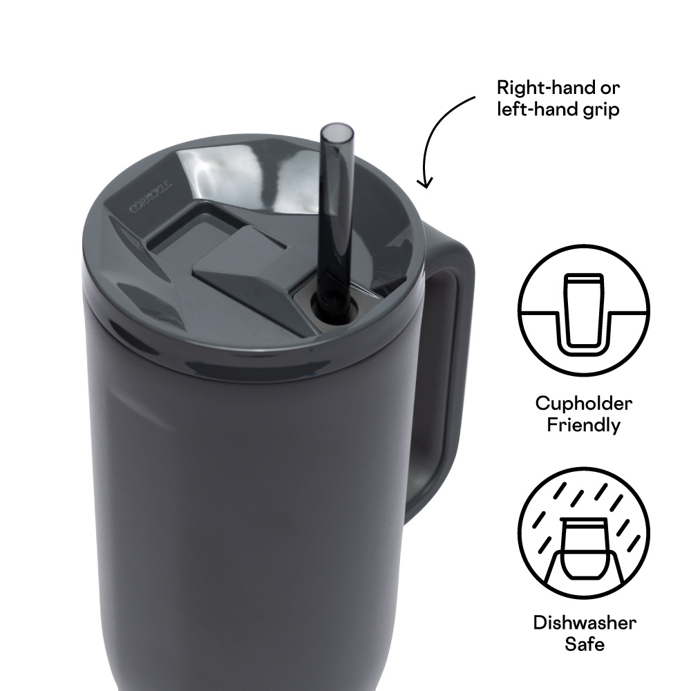 Let the joyrides commence.Cruiser, our largest straw cup to date, keeps 40oz of your favorite beverage cold for up to 20 hours, allowing you to enjoy everyday adventures without giving your hydration needs a second thought.It features an exclusive dual-function sip + straw spill-proof lid, a comfy soft-grip handle, and a stay-put silicone bottom to keep it upright no matter your destination or how many stops you take on the way.