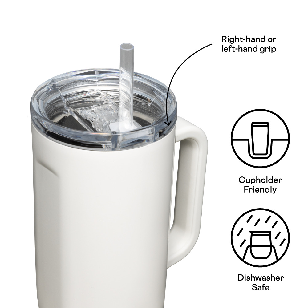 Let the joyrides commence.Cruiser, our largest straw cup to date, keeps 40oz of your favorite beverage cold for up to 20 hours, allowing you to enjoy everyday adventures without giving your hydration needs a second thought.It features an exclusive dual-function sip + straw spill-proof lid, a comfy soft-grip handle, and a stay-put silicone bottom to keep it upright no matter your destination or how many stops you take on the way.