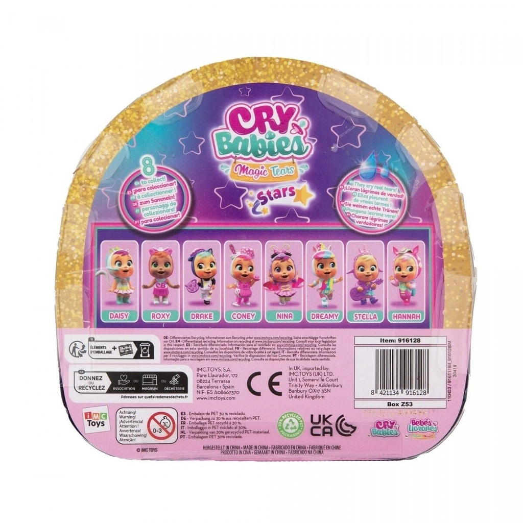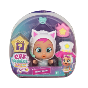 The Cry Babies Magic Tears Stars Talent Babies feature 8 articulated characters with removable silicone outfits and 5 accessories.Now in transparent packaging for easier collecting, these dolls cry real tears and celebrate their unique talents.