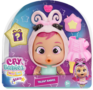 The Cry Babies Magic Tears Stars Talent Babies feature 8 articulated characters with removable silicone outfits and 5 accessories.Now in transparent packaging for easier collecting, these dolls cry real tears and celebrate their unique talents.