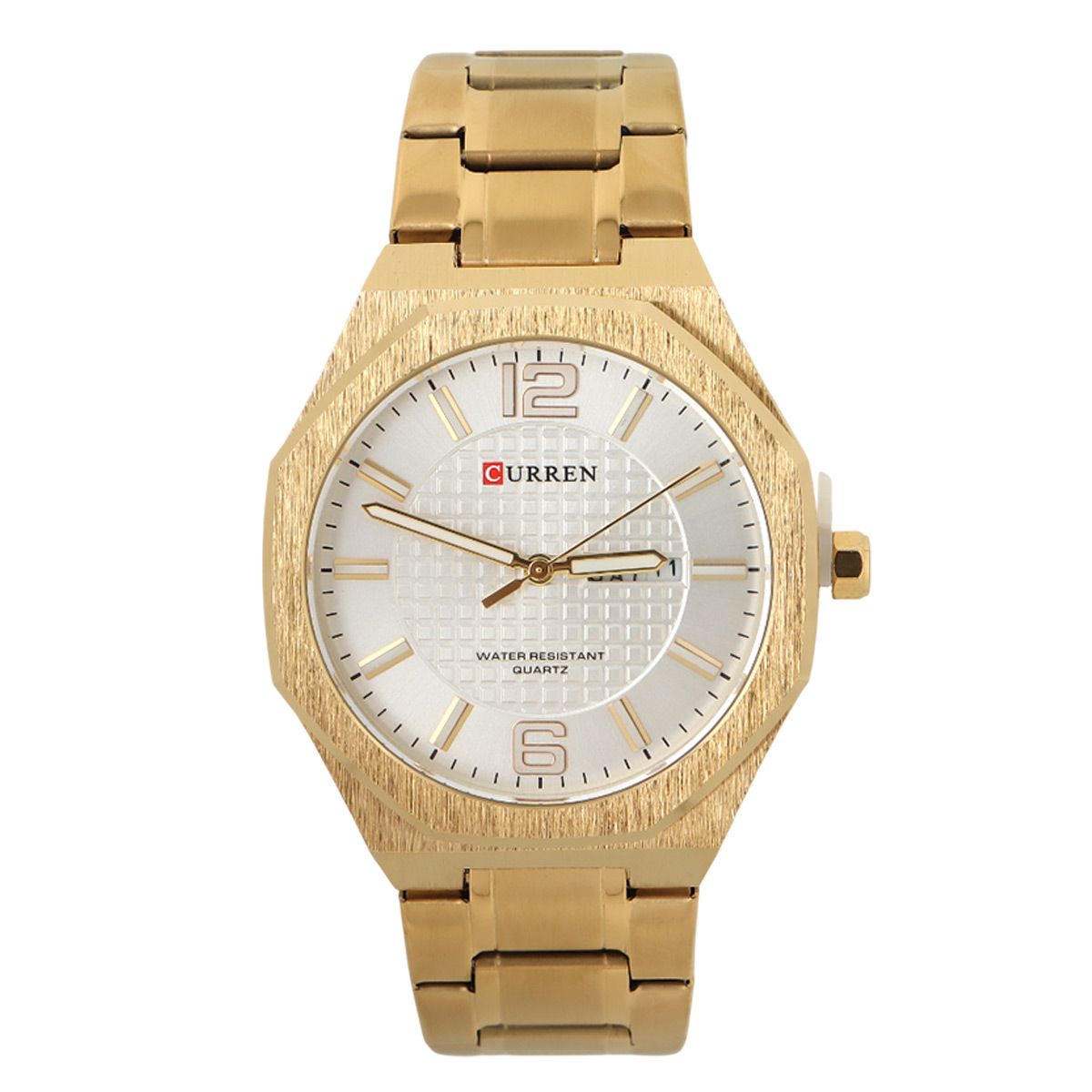 Curren Gents Metal Quartz Watch Gold Round White Dial With Day & Date Display