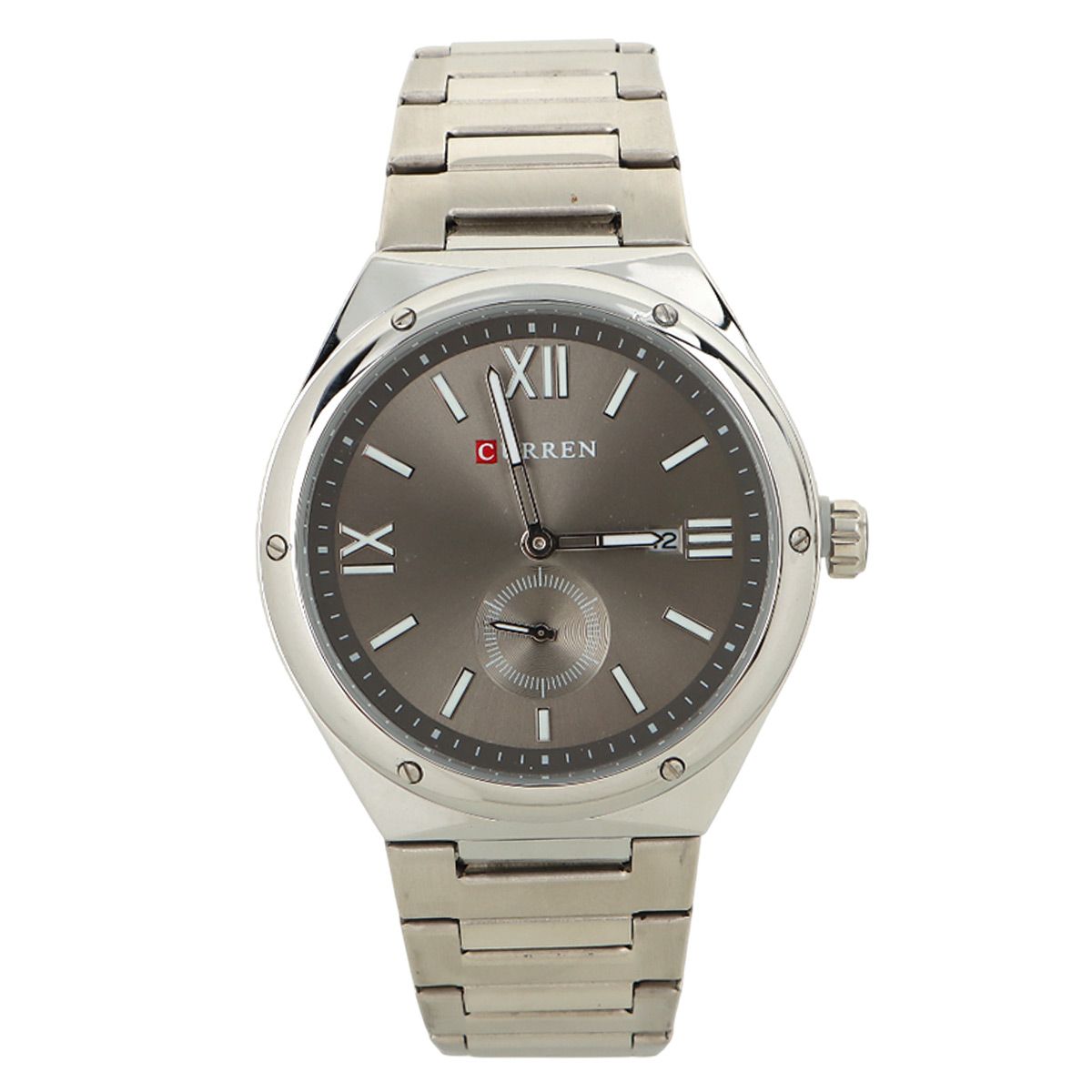 Curren Gents Metal Quartz Watch Silver Round Gray Dial With Date Display