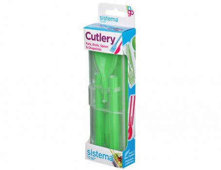 Food solutions for busy lifestyles.The Sistema® Cutlery To Go™ is perfect for eating lunches on the go at school, work or picnics.Simply click handle and utensil together to use.The Sistema® Cutlery To Go™ contains easy to assemble knife, fork, spoon and chopsticks in a hygienic carry case.Safe to use in the Dishwasher (top rack).Designed and Made in New Zealand.Phthalate & BPA Free