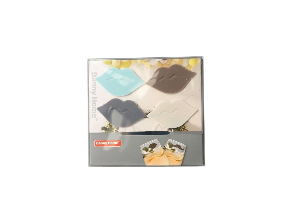 A set of 4 wine glass markers with cute lips.The wine glass marker fits around the stem of the glass with a clip that locks & unlocks.Perfect for parties and for those special moments with frien
