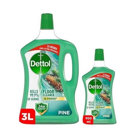 Dettol Antibacterial Floor Cleaner Pine Scent, 3L + 900ml FREE