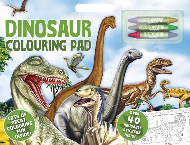 What colour was a T-rex? Children can let their imagination free when deciding how to colour in their favouirte Dinosaurs.This Artist Pad comes with lots of colouring fun, three jumbo crayons and over 40 reusable stickers