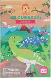 About this itemSmall book, big fun.Explore the prehistoric world of dinosaurs as you use the 10 vibrantly colored markers to color in and design your favorite dinos.Beautifully illustrated coloring set jam-packed with markers, stickers, and coloring pages.All in a perfectly portable package!Contains a 48-page coloring book, 10 high quality markers, 5 sticker sheets and two special storage drawers to stash your stuff.Cleverly designed book-like box has compartments to keep everything neat and organized; innovative magnet closure keeps it all together.Collect all the Tiger Tribe take-along kits!For boys and girls ages 3+.Conforms to the highest international product safety standards.