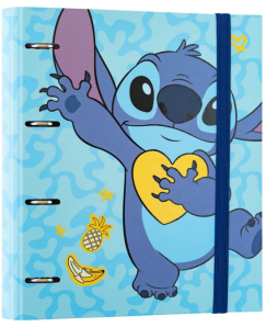 This Stitch school folder is made of 2 mm thick cardboard hardcover lined with 150 gram matte laminated paper.It measures 32 centimeters high by 27.5 centimeters wide.It features a four-ring, 35-millimeter binding and a 9-millimeter elastic closure.It features a custom design both inside and out.At erikstore, we have a wide variety of stationery supplies with the most diverse and current licenses on the market.All our products are 100% official.
