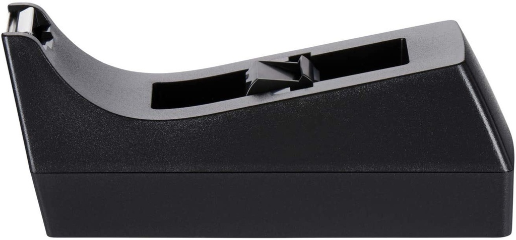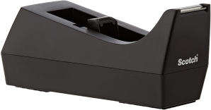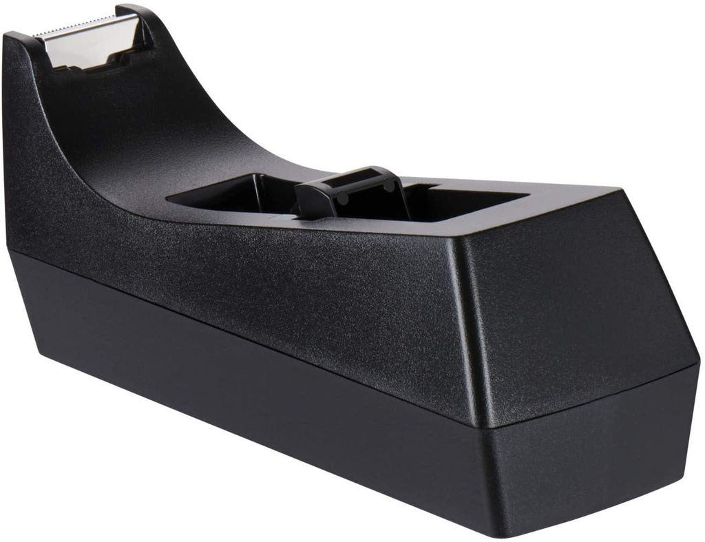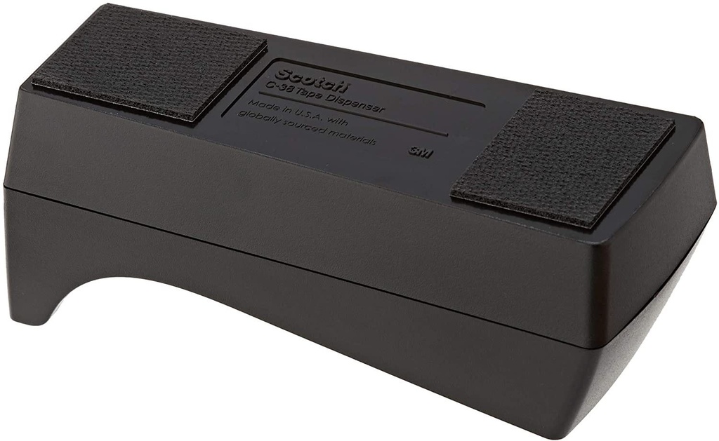 Scotch classic desktop tape dispenser C-38 is made from 100% recycled plastic.This black, economical tape dispenser allows for one-handed dispensing of a wide variety of tapes.It holds standard, 1 in.core tapes and can hold tape up to 3/4 in.wide by 1500 in.long.The weighted base allows for one-handed dispensing.This dispenser is an economical, reliable, classic style desktop office tape dispenser and is made in the USA.
