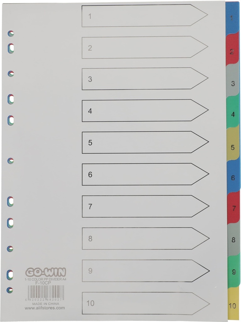 Divider Index 1-10 Color PP A4 Assorted