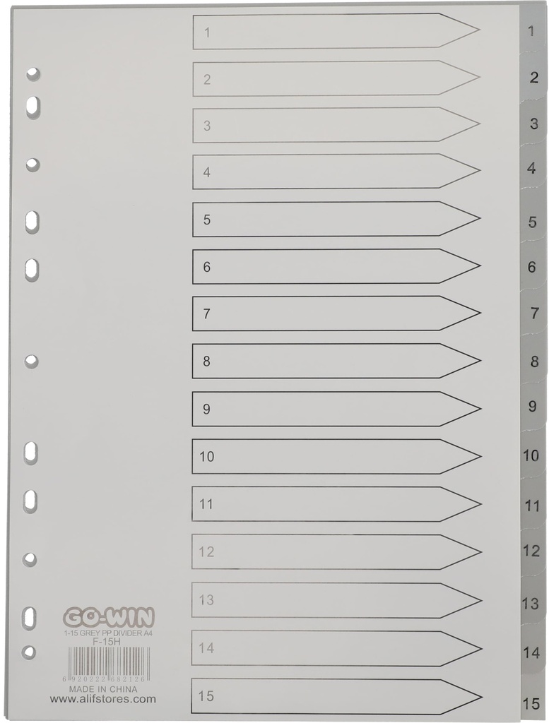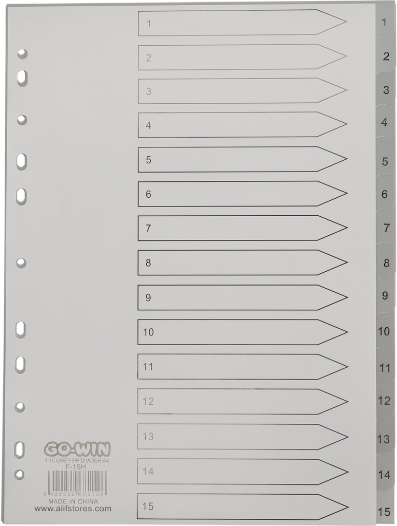 Divider Index 1-15 Grey PP A4 Grey