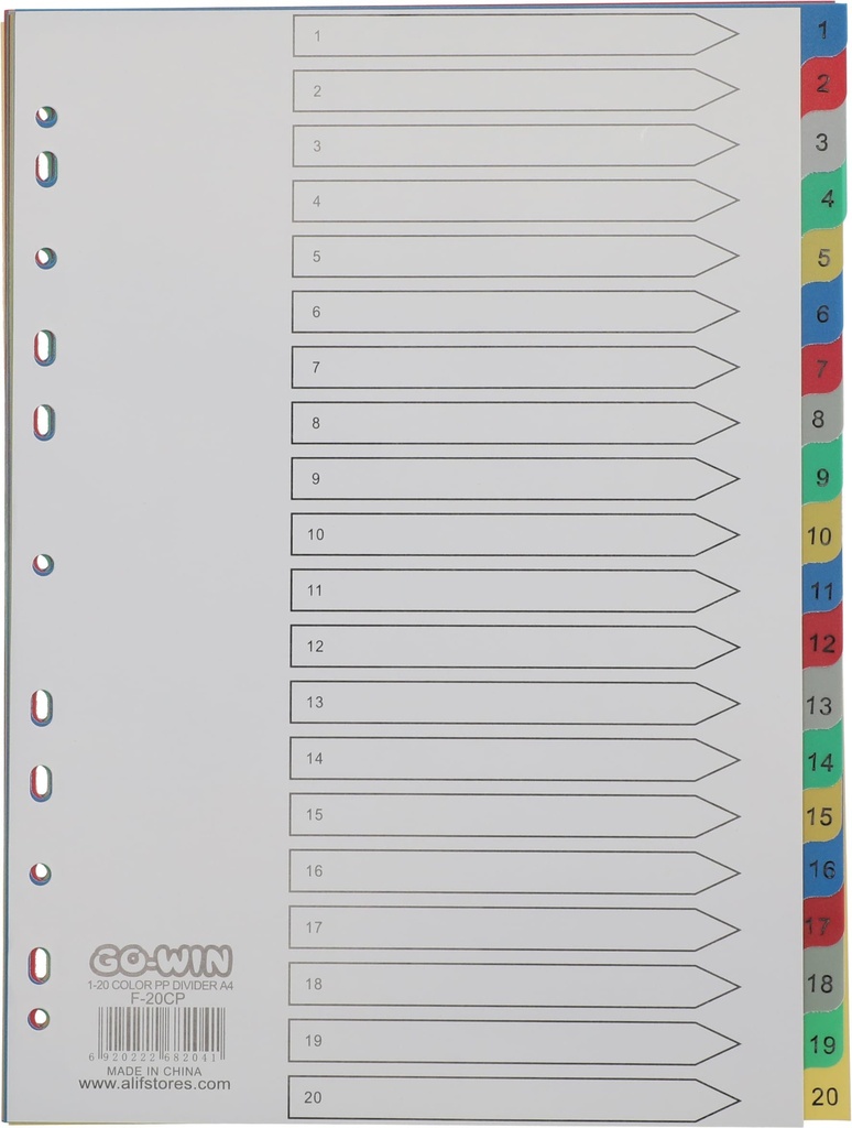 Divider Index 1-20 Color PP A4 Assorted