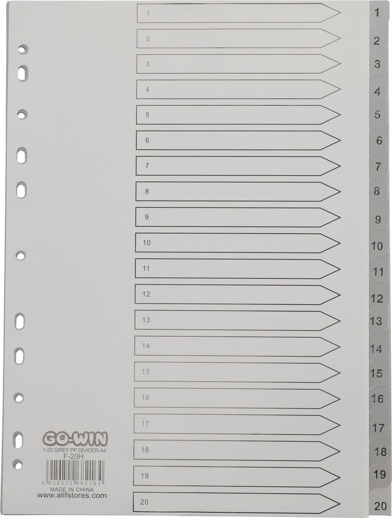 Divider Index 1-20 Grey PP A4 Grey