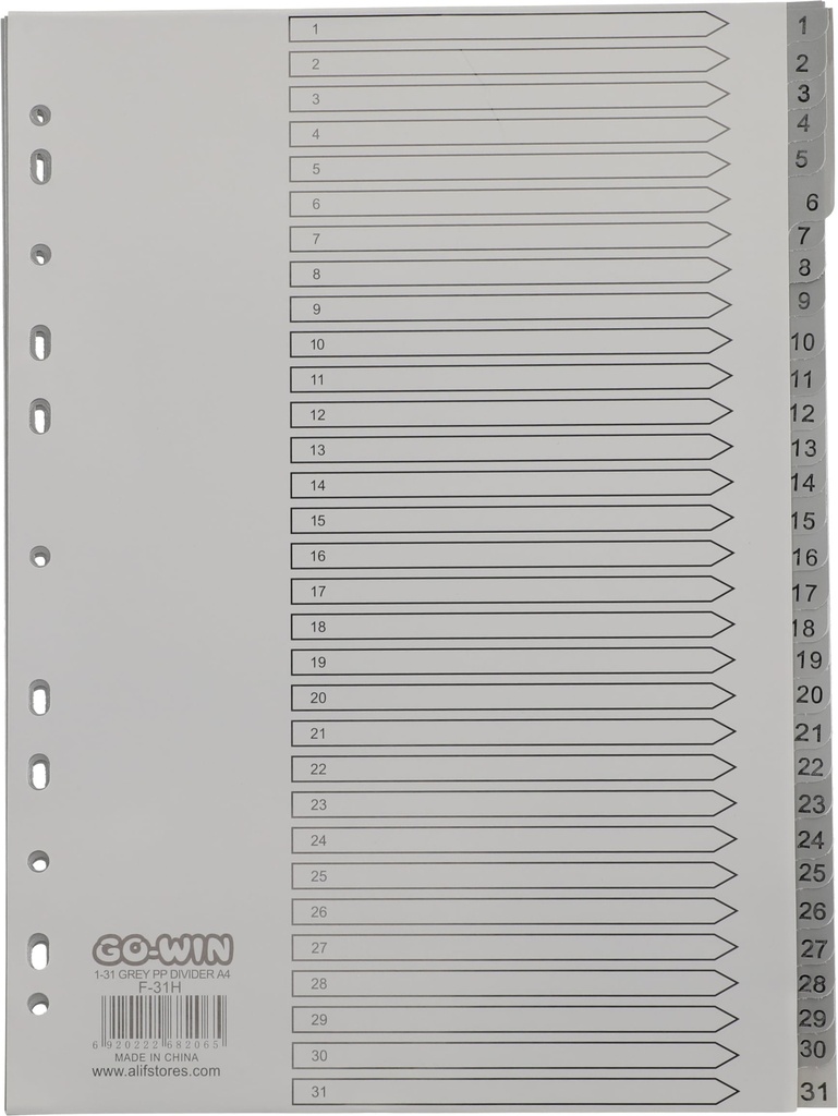 Divider Index 1-31 Grey PP A4 Grey