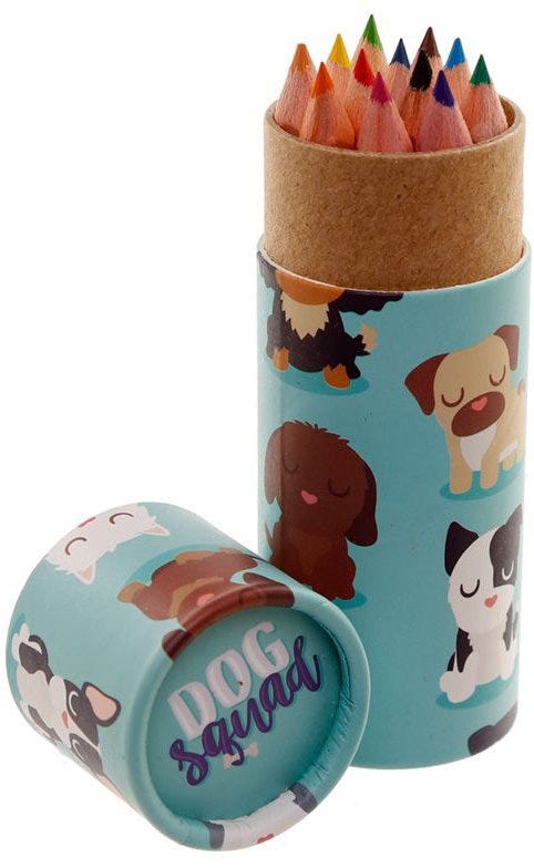 Dog Squad Pencil Pot with 12 Colouring Pencils, Material: Wood and Card, Number in Set: 12 Pencils - Assorted Colours.