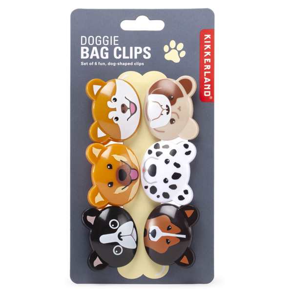 Featuring an adorable assortment of canine faces, these small dog-shaped bag clips are a perfect set of storage essentials for animal lovers.Made of extra-strong plastic with durable steel springs, these long-lasting doggie clips preserve the freshness of your chip, coffee and snack bags while adding colorful cuteness to the kitchen.