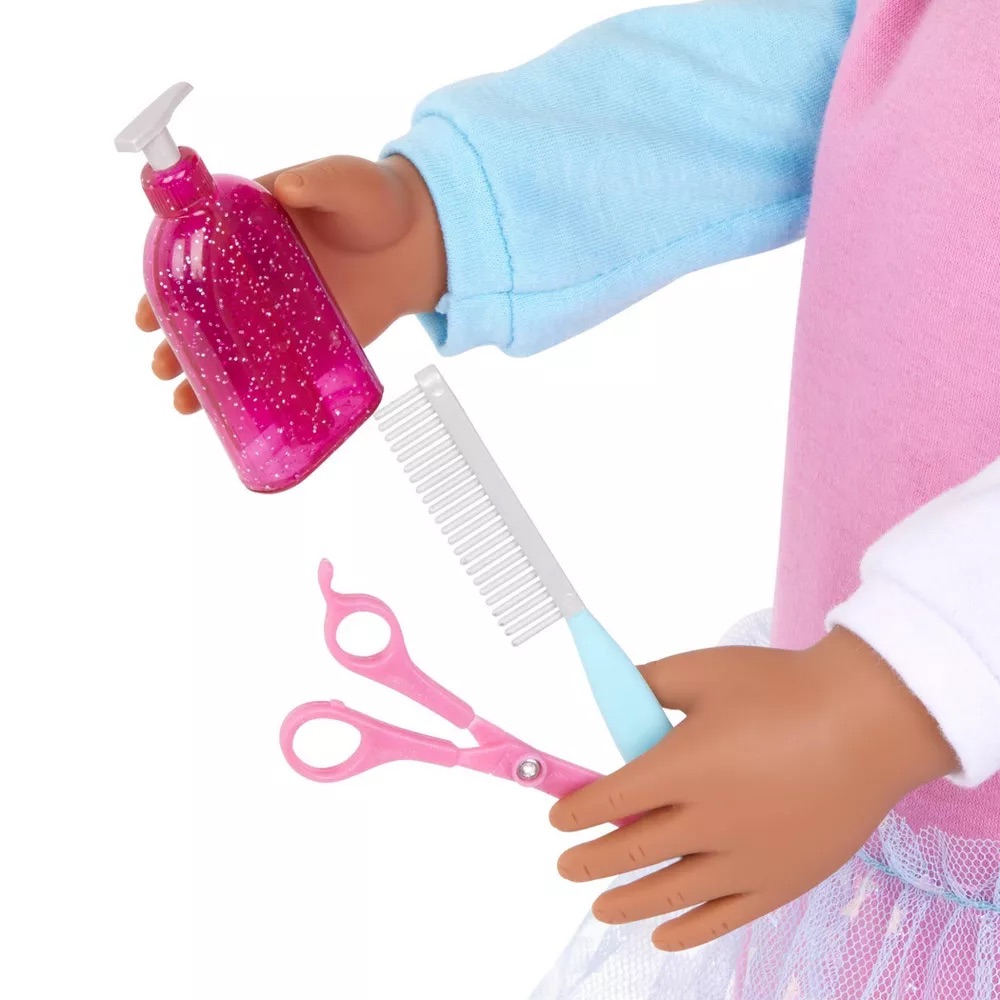Double the styles.Double the glam! Our Generation 18-inch doll Safie and her pet pup Ginger arrive with matching hairstyles.But little stylists can create lots of new looks and set fun trends! Safie