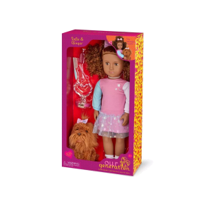 Dance to the beat of your dreams with Our Generation 18-inch doll Catalina! Her outfit is designed in a ballet and hip-hop blend, including a graphic “Dance” top, a twirly tulle skirt, a pink bodysuit, and bright pink shoes.She has a huggable soft body with lifelike features to delight doll fans during playtime.Her dark-brown eyes open and close, and her curly brunette hair is fun to style in lots of ways.She even has a pink hair bow to decorate every look! When it’s time for dress-up, her outfit has easy-open closures to quickly put on and remove.So fashion lovers can mix, match, and create more cute combos! Our Generation dolls make a great gift for kids ages 3+ (small parts), encouraging them to imagine their own unique stories.