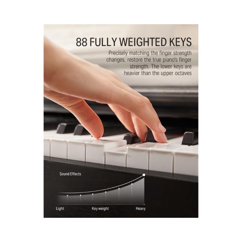 The Donner DDP-100 Beginner Digital Piano boasts 88 full-size heavy hammer-action weighted keys, offering an authentic piano feel for improved performance posture and enhanced interest.Featuring AWM