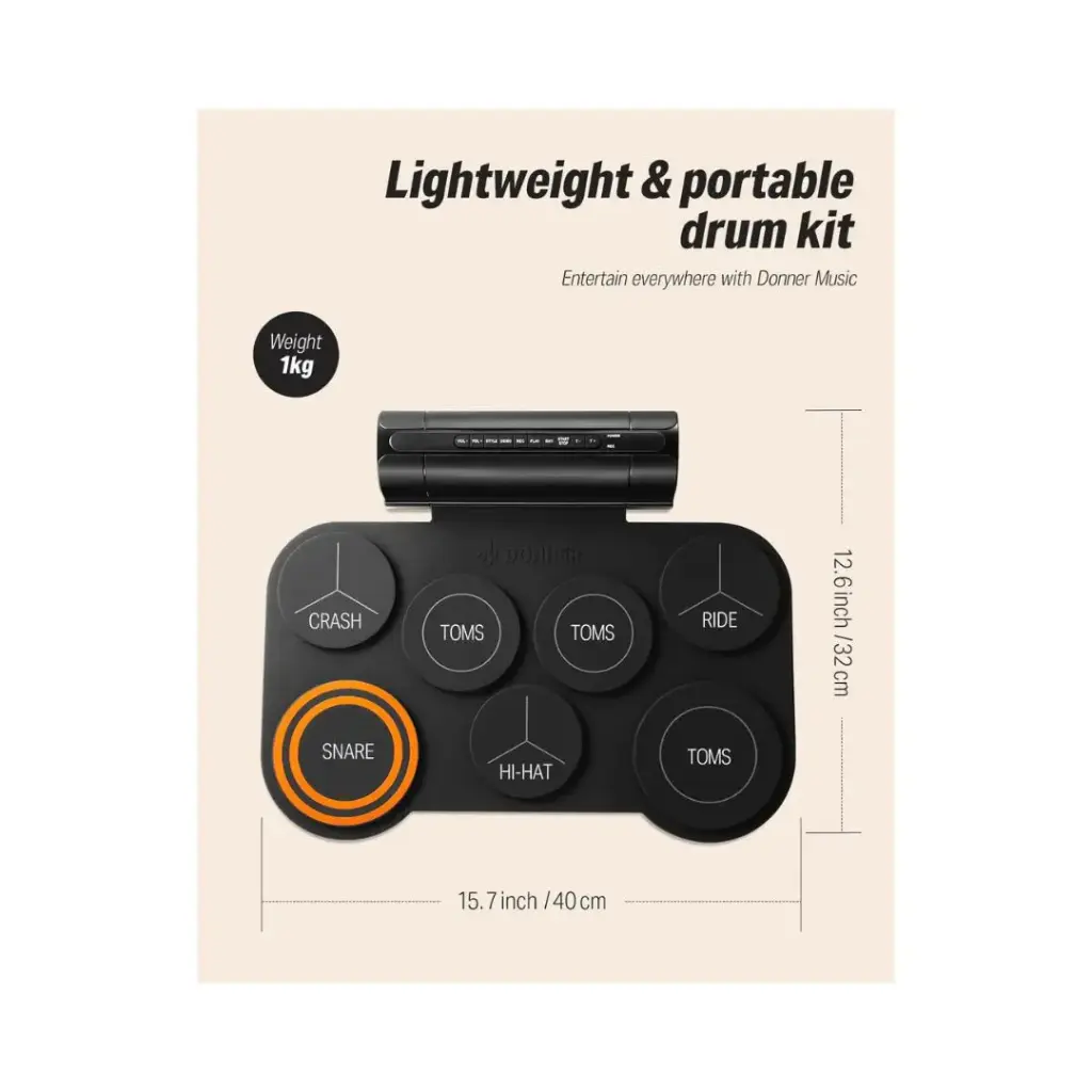 The Donner Electric Drum Pad unleashes musical creativity, offering a portable solution for practice and performance.Ideal for beginners and kids, it serves as both a musical toy and an alternative i