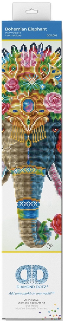 Bohemian Elephant by Carlie Edwards.Carlie grew up in Byron Bay, Australia, which influenced a love of animals and all things colourful! The African Elephant symbolises wisdom, kindness and intelligence.She is strong yet gentle, self-aware yet nurturing to others.Place her on your wall as your spirit animal and she will guide you on your journey.Our Diamond Dotz Facet Art Kit comes with everything you need to complete this unique artwork.Diamond Dotz is an amazing new craft where stunning designs are created with diamond like facets.From a broad range of designs that cater to all tastes, a diamond painting kit will produce a stunning shimmery effect.Quick and easy to do, the end result is an exquisite diamond painting design that is so spectacular that it will have you eager to do more!