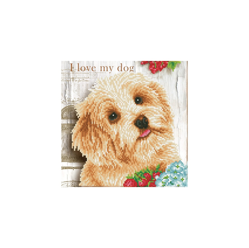 I love my Dog - Pre-Framed Diamond Painting Artwork Kit - 12.01 x 12.01 inOur Diamond Dotz Facet Art Kit comes with everything you need to complete this unique artwork.Diamond Dotz is an amazing new