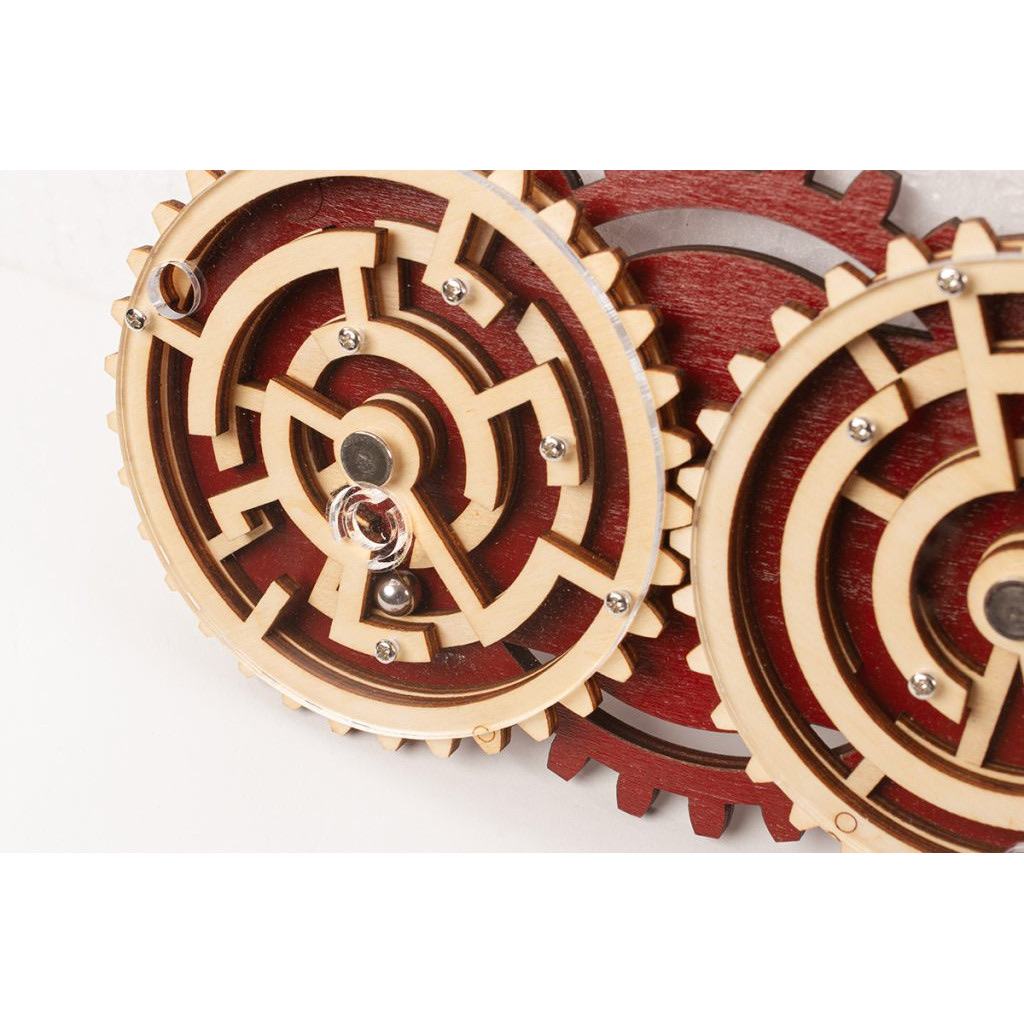 Description:CHALLENGE: Can you find the solution to remove the two balls simultaneously?ATTENTION: As both gears move at the same time, a step closer to the exit on one gear, may be a step back