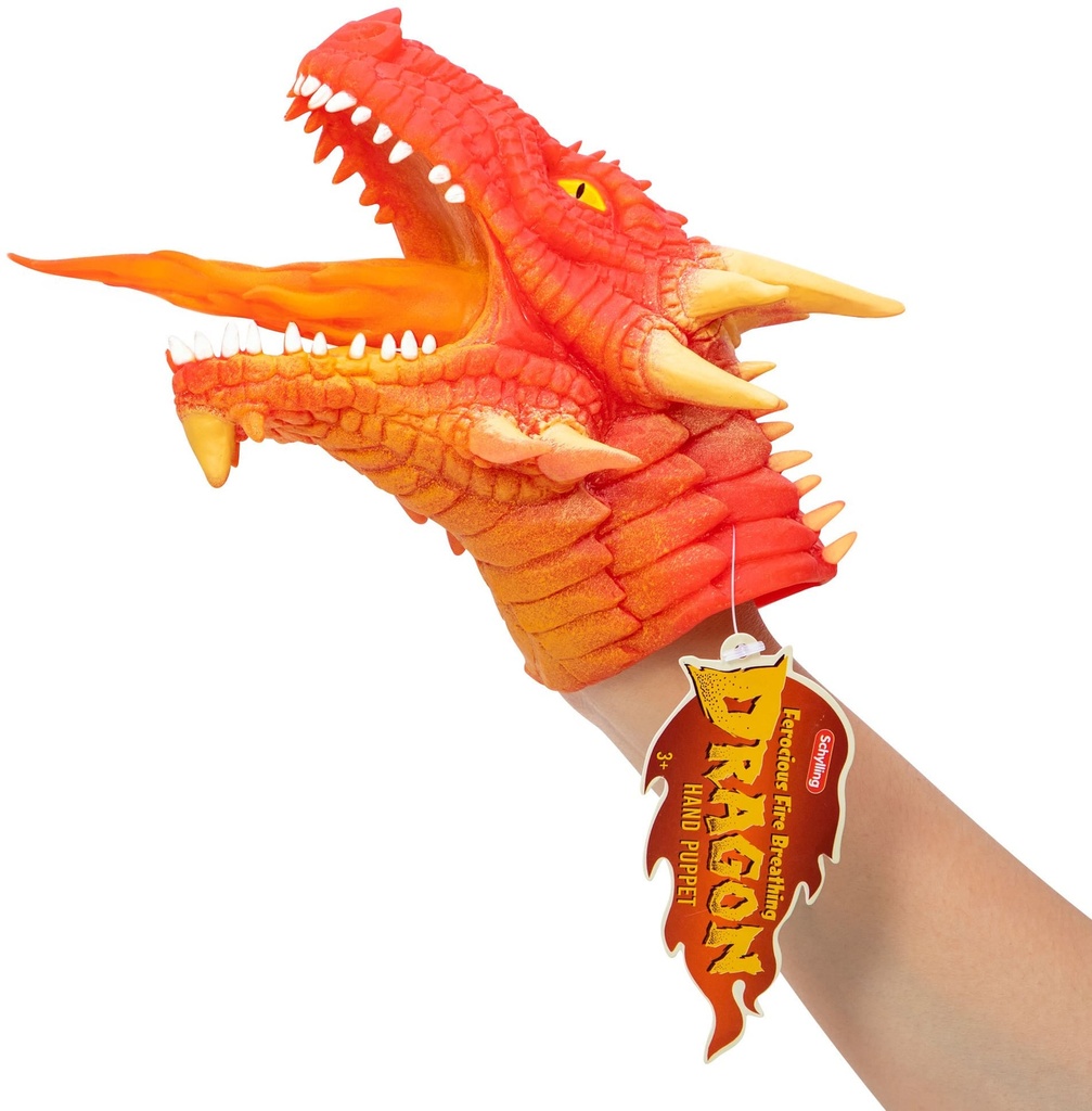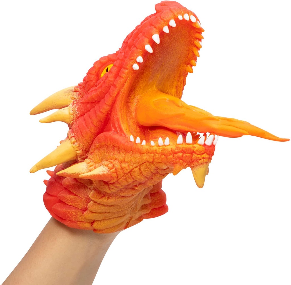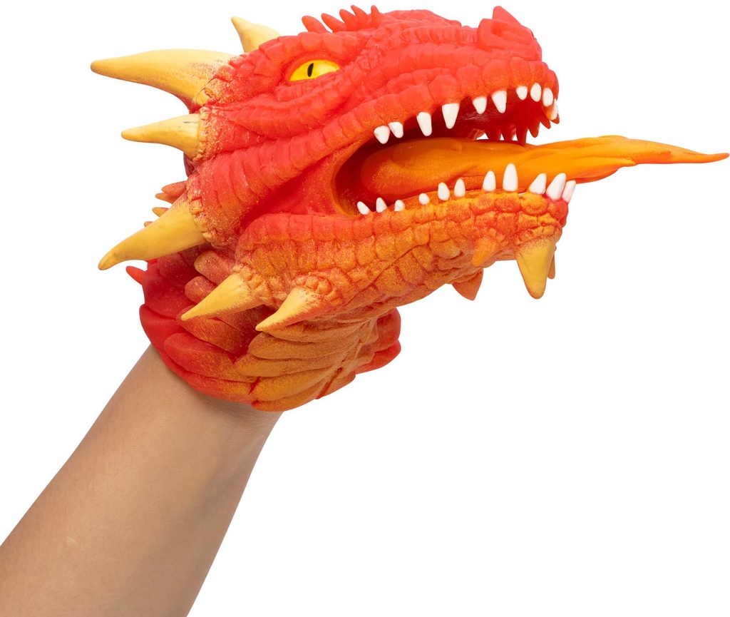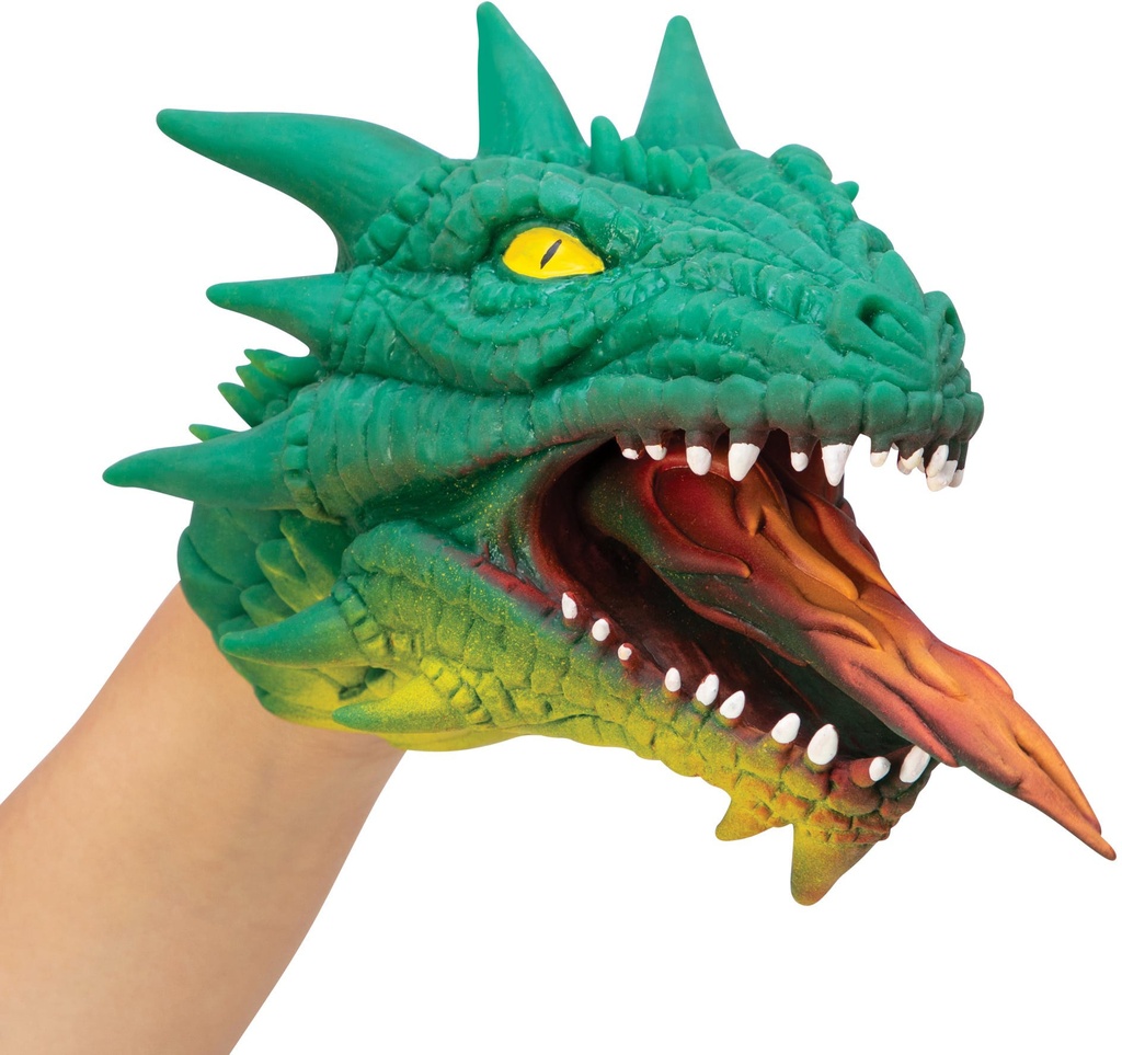 In the time of legends, Dragons ruled the skies.Now you can command Dragons with your hand.Make a million dragon expressions and chomps with this super stretchy, dragon hand puppet.The stretchy flame flicks when the mouth opens.The stretchy rubber skin gives these dragons a life-like look and feel.