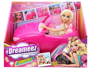 Dreameez Doll with Car - Drive into a dream world with the Dreameez Doll with Car Set.Get ready for a wild ride with this fashion doll and her super cool set that includes an open top car.Watch how our female driver enjoys driving with the roof down, turning heads wherever she appears.Expect endless fun as this fashion babe hits the road in top style.