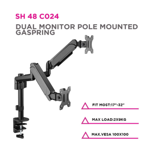 Dual Monitors Pole-Mounted Gas Spring Monitor Arm - SH48 C024 (Fits Most 17" ~ 32")329.00NovoProduto Limitado